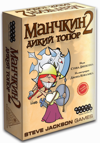 В 2002 году вышло первое дополнение, полностью совместимое с базовым набором, – «Манчкин 2», более известный как «Манчкин 2: Дикий топор». В нем впервые появились пустые карты для неуемной фантазии хозяина колоды и раса Орков.