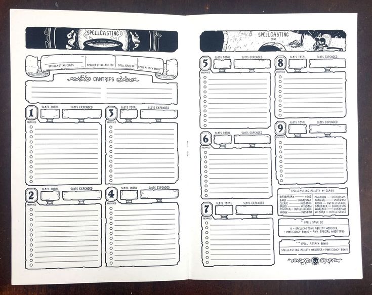В конце книги также есть 6 готовых персонажей и пустые бланки для ваших собственных героев.