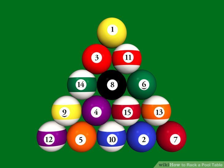 В правилах игры в американский бильярд точно указано, как должны быть размещены шары. Для этого используйте треугольник, в котором удачно расположены все шары, кроме белого. Передний шар должен быть на задней отметке. Обратная метка — это точка на бильярдном столе. В следующий ряд нужно положить один из шаров разного цвета, то есть один «сплошной» и один «полосатый».