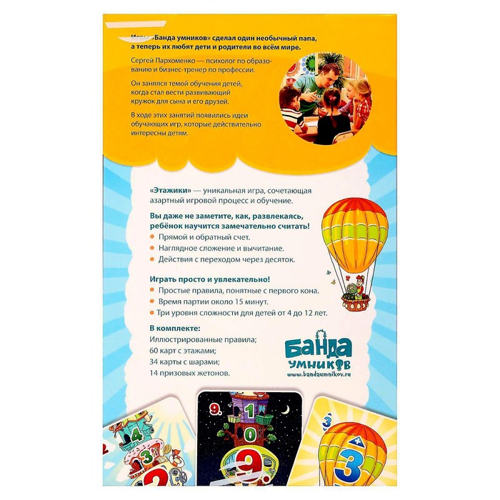 Обучающая настольная игра Банда умников «Этажики«, карточная математическая на обучение порядковому счету и изучение арифметики