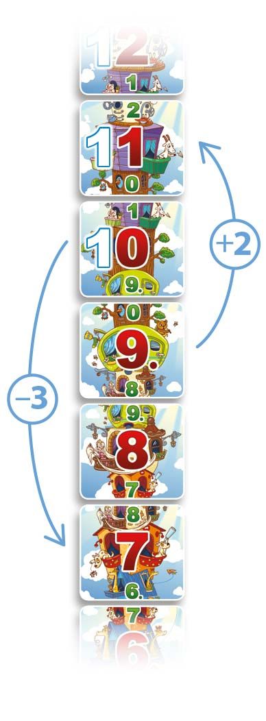 - В свой ход игрок выкладывает карты этажей в соответствующую стопку игрового поля, либо оставаясь на том же этаже, либо перемещаясь вверх или вниз на число этажей на карте с шаром.