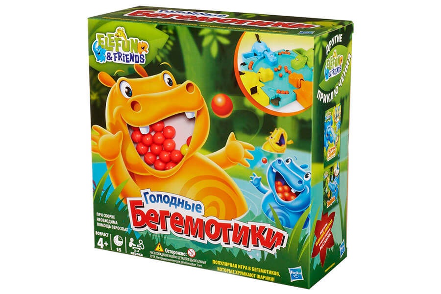 Настольная игра «Голодные бегемотики» уже завоевала популярность по всему миру. Кто-то называет эту игру величайшим изобретением для борьбы со стрессами, другие делятся опытом прокорма бегемотиков на дружеских вечеринках и корпоративах, а кто-то считает, что это лучшая детская игра. Голодный бегемот и его приятели готовы присоединиться к безумному кормлению. Высыпьте все шарики на игровую базу и затем начните поедание. Двигаться нужно быстро. Игрок, чей бегемот сжует больше всех шариков, выигрывает.