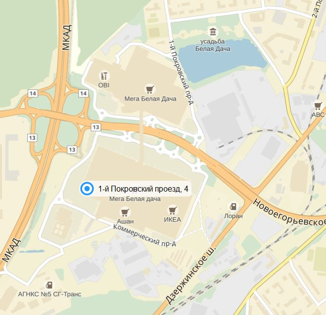 ТЦ «Аутлет Вилледж Белая Дача» расположен по адресу: