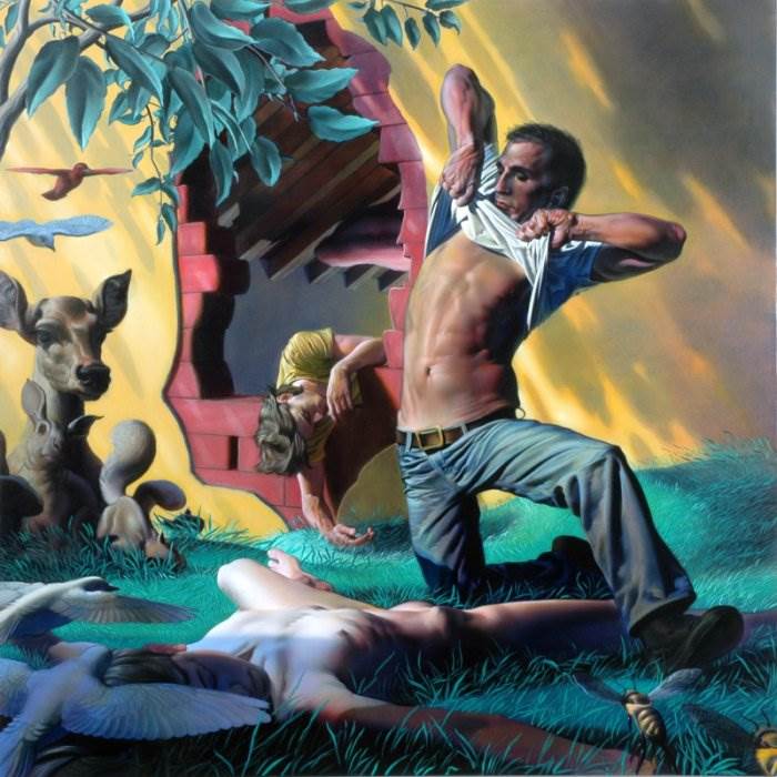 В итоге он всё-таки окунается с головой в творчество, но выходит у него картина с видами истинного конца света.