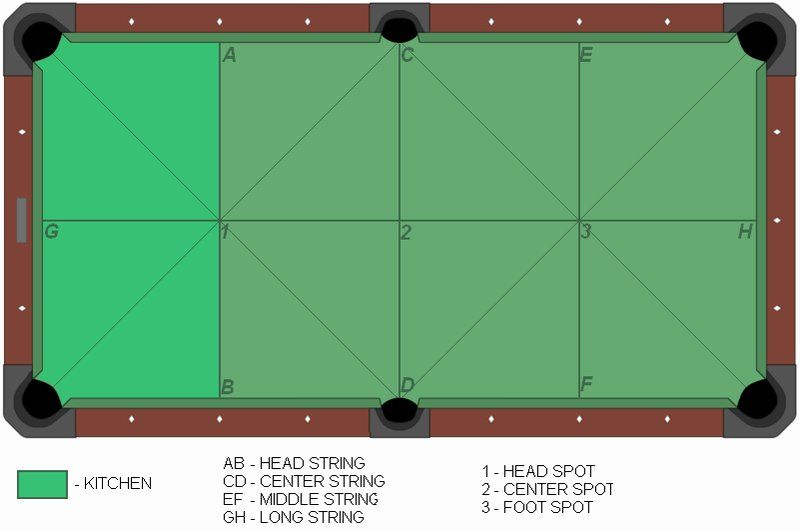 - Если 1-шар не был забит во время перерыва, ваш ход заканчивается, даже если шары были забиты в лузу или четыре шара были сбиты с рельсов. С битком в руке другой игрок ставит его в любом месте и должен ударить по шару с наименьшим номером на столе.