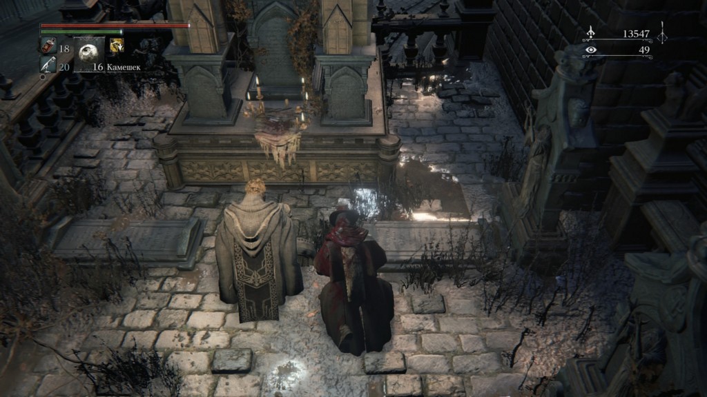 Поэтому не удивляйтесь, когда после совместного решения «накинуться со всем, что есть» вы окажетесь единственным, кто побежит на Отца Гаскойна с секирой наперевес. А остальные герои при этом уйдут в Сон охотника и оттуда будут наблюдать, как враг раскатывает вас по полу подземелья.