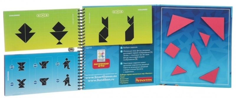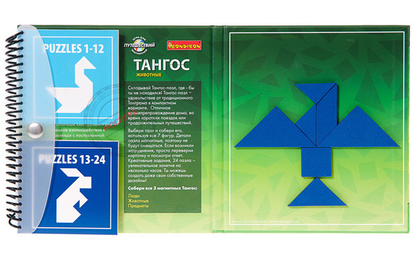 Размер маленькой книжечки головоломки «Тангос предметы» позволит без труда взять её с собой в любое путешествие, а волшебные фигуры доставят и вам, и вашему ребёнку массу удовольствия.