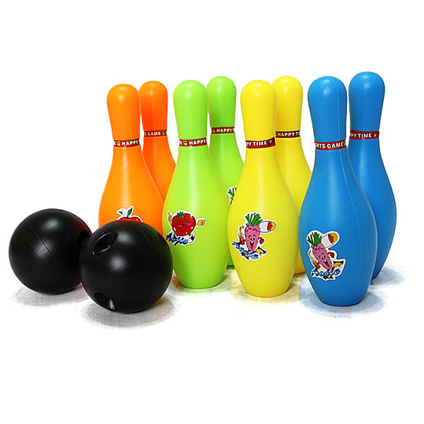 - Включает 6 пластиковых кеглей и пластиковый шар для боулинга .