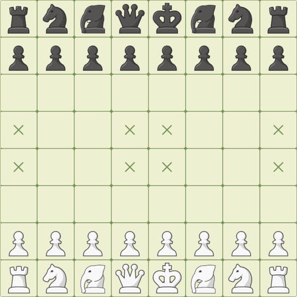 Двигается как L в любом направлении и может перепрыгивать через собственные фигуры противника - Слон : ходит на две клетки по диагонали, вперед или назад и может перепрыгивать через любую фигуру