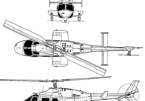 Составляющие этой машины мало чем отличаются от предыдущего типа. В промышленных и военных машинах разве что моторы мощней. Также отличием является наличие 2-х несущих винтов. Геликоптеры, построенные по такому принципу, не имеют управляющего винта. Однако комплектуются вертикальным стабилизатором.