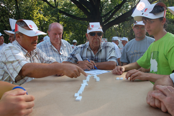Игра также начинается с самого маленького дубля, но теперь победитель записывает очки себе. Он подсчитывает сумму оставшихся цифр на руках у проигравших, если она больше двадцати пяти, то можно записать.