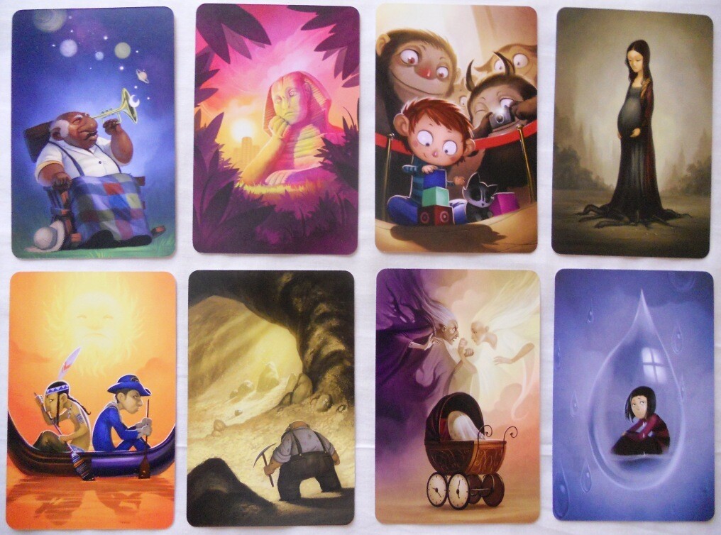 В игре 84 карты размером примерно 3,5 на 6 дюймов. Картины представляют собой очень интересные сочетания цветов и изображений, которые заставляют вас смотреть дважды, чтобы определить, на что вы на самом деле смотрите.