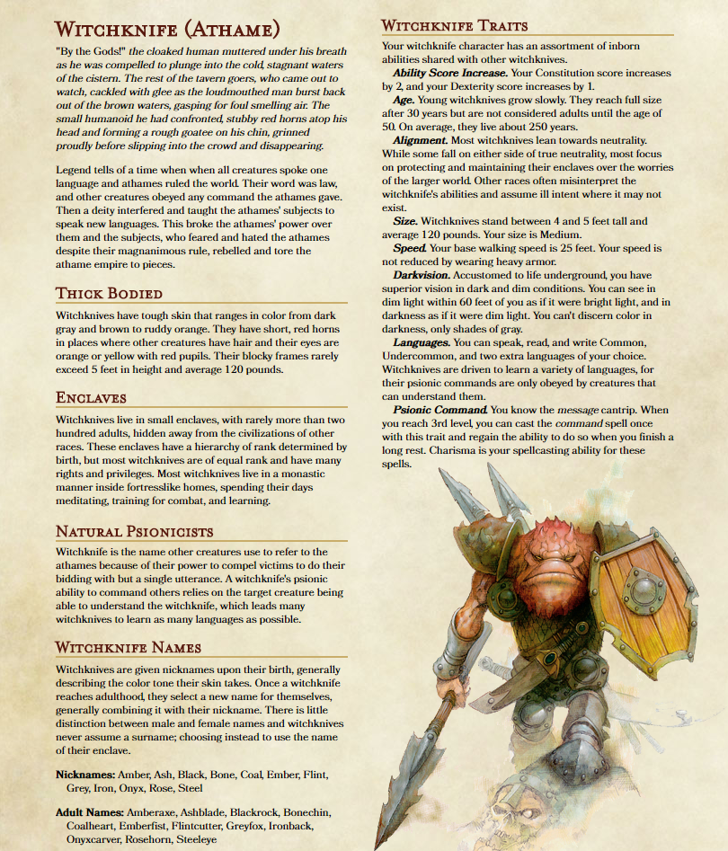| Вундеркинд | Полуэльф, полуорк или человек | Вы получаете владение одним навыком, одним инструментом или одним языком, а также получаете опыт с одним навыком. | Путеводитель Ксанатара по всему | ||