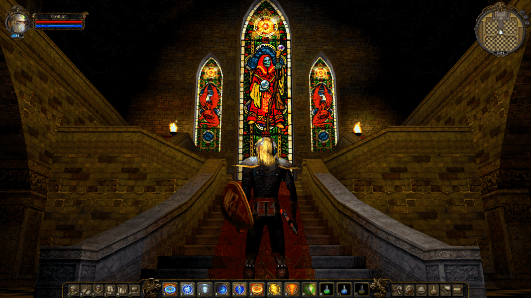 Как только вы войдете в игру, вам откроется вид на мир через плечо. Вы взаимодействуете с объектами, используя клавишу Shift, когда их имена появляются внизу экрана, а остальное время вы тратите на уничтожение полчищ гоблинов/крыс/убийц/и т.д. которые атакуют вас с неестественной частотой.