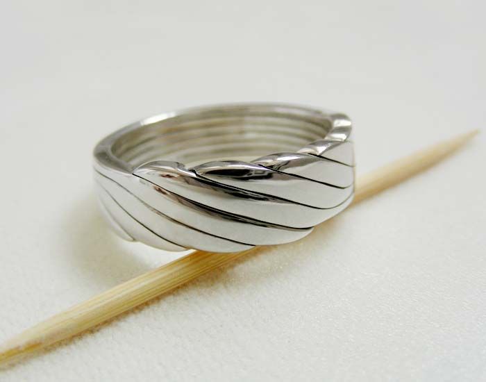 Первые три кольца образуют как бы первый ярус. В верхнее кольцо вдеты два других кольца, которые на рисунке повернуты к зрителю ребром.