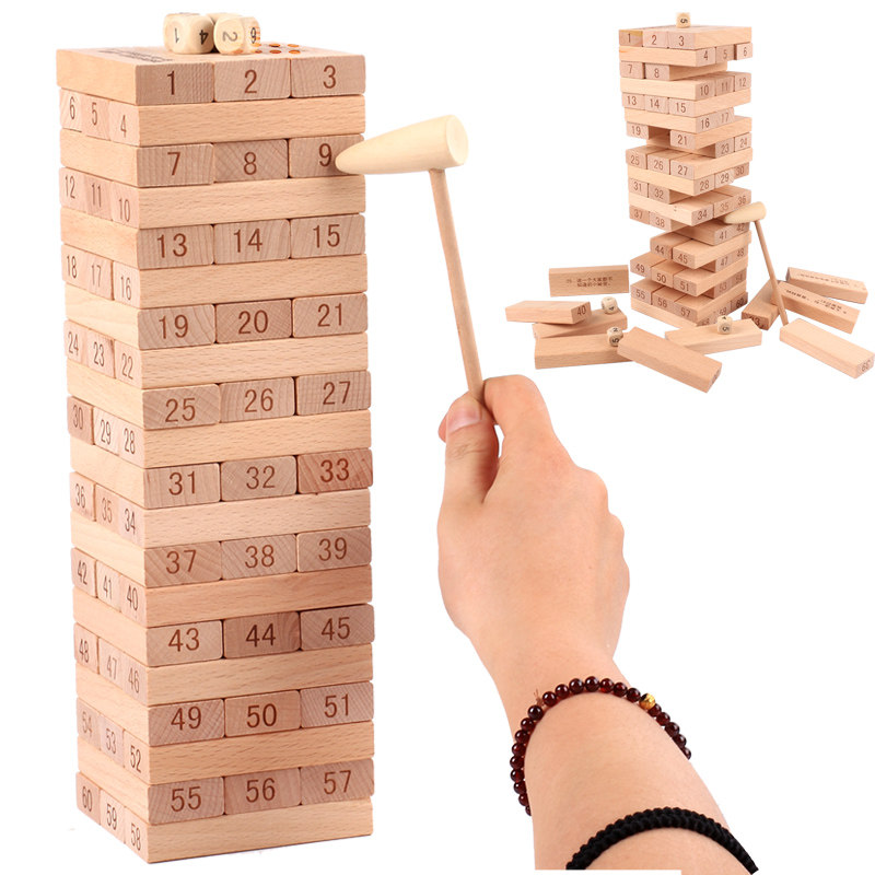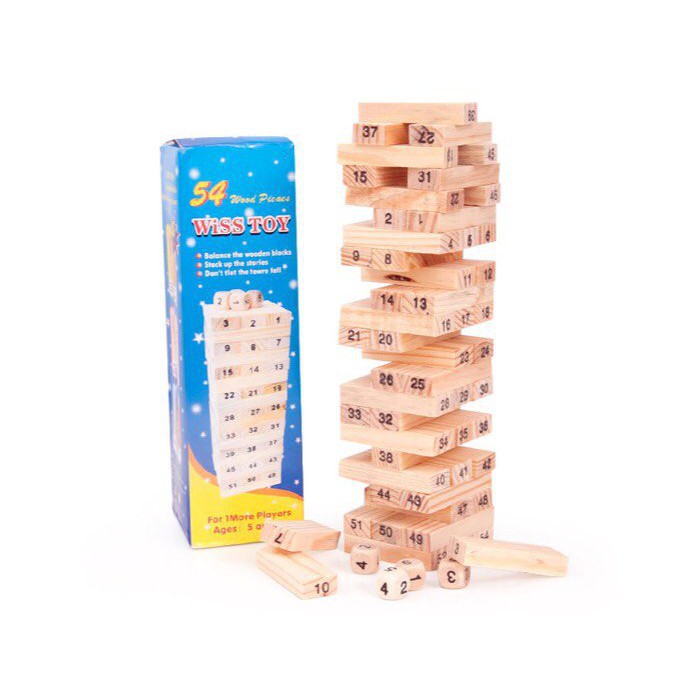 Он состоит в удалении блоков из середины башни, а затем размещении их на ней, предотвращая ее падение. Последний игрок, который успешно переместит и поместит блок до того, как башня упадет, становится официальным победителем. Очень легко играть и развлекательная игра для детей и взрослых.