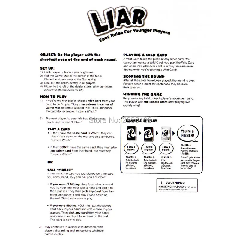 Если вы не лжете, покажите карты, которые вы только что разыграли, другим игрокам. Игрок, обвинивший вас во вранье, должен добавить Нос со стола к своим очкам, затем взять ВСЕ карты из стопки сброса и добавить их себе в руку.