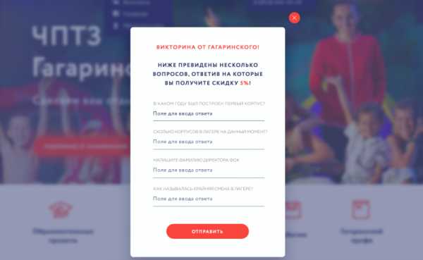 Так на сайте ФОК Гагаринский посетителям предлагается ответить на вопросы викторины, чтобы получить скидку.