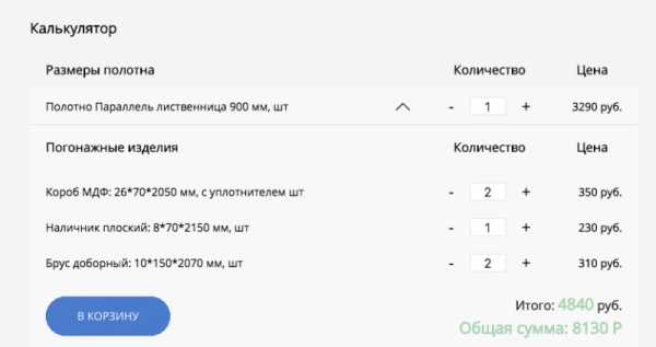 На сайте интернет-магазина дверей Sidoorov в разделе межкомнатных дверей также можно посчитать стоимость двери в зависимости от размера полотна и наличия погонажных изделий.