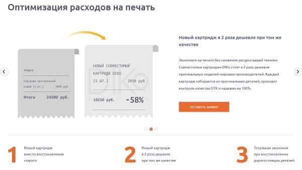 На сайте Diko-group, опять же, с помощью простого приема показали выгоду при использовании аналогичных услуг в Diko и других компаниях. Теперь менеджерам Diko не приходится тратить время на долгие переговоры, они просто показывают эту схему: