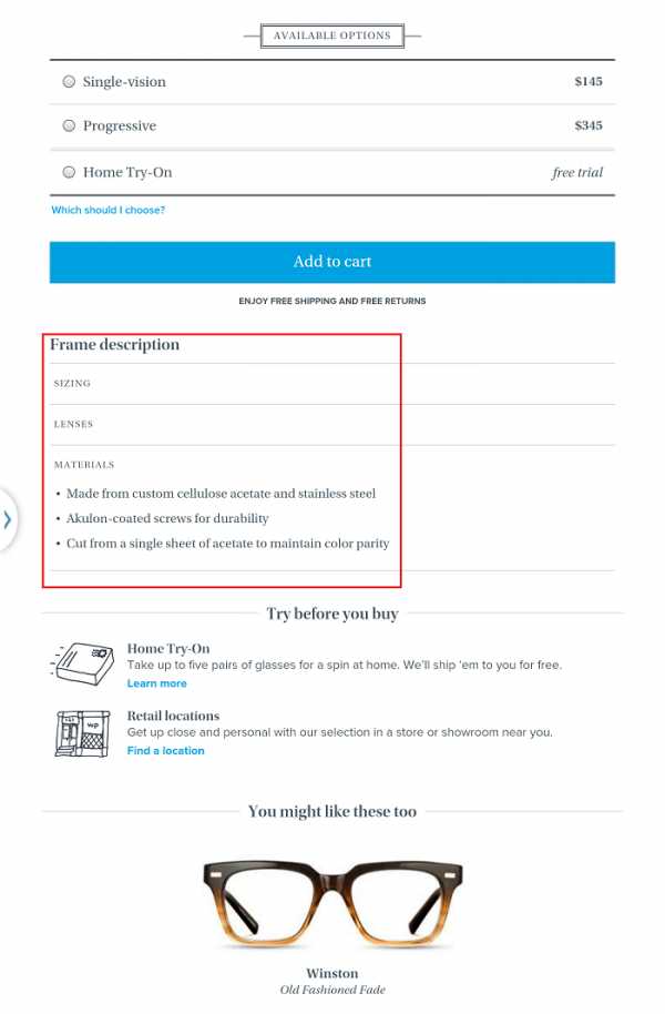 Зачастую, пользователю нужно просто увидеть, чтобы понять хочет он купить или нет. Поэтому, очень важно визуализировать результат. То есть, если Вы продаете диваны и у конкретной модели 5 вариантов расцветки, почему б не показать их все? Многие интернет-магазины делают выбор цвета в виде выпадающего списка, или даже с помощью “цветных квадратиков”, но это все не работает, если человек не увидит весь диван именно в том, цвете, который он хочет.