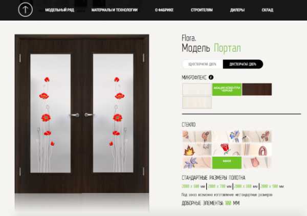 Так, мы создали визуальный конфигуратор дверей на сайте “Фабрики Восход” . Работать с ним очень просто, выбираете модель, затем цвет экошпона, затем цвет стекла, а также можно посмотреть как будет выглядеть выбранный вариант на 1 и 2х створчатой двери.