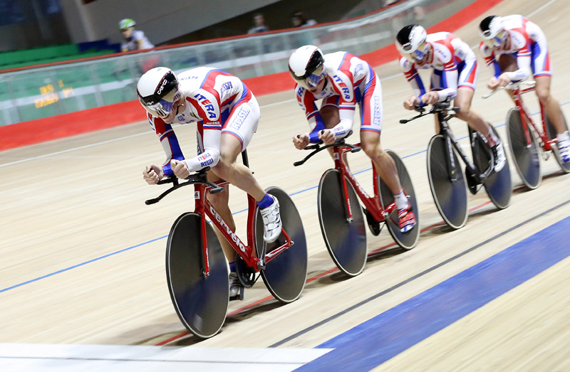 Дистанция составляет 4 км и является самой сложной. Участники одной команды (4 велосипедиста) должны отлично понимать действия друг друга и обладать абсолютной слаженностью на протяжении всей велогонки. Ключевое звено в этом виде велотрековой гонки – работа тренера, его опыт и результат организации процесса подготовки. Регламентированный старт – середина трека (по разные стороны овальной дистанции). Время начинает фиксироваться после того, как третий спортсмен оставляет линию старта позади. Еще одним условием является то, на финише должны обязательно быть три участника команды.