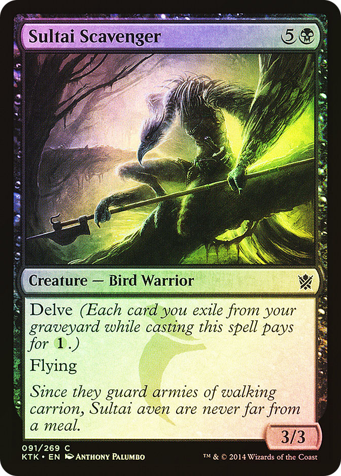 | Спуск (Каждая карта, которую вы изгоняете со своего кладбища при разыгрывании этого заклинания, оплачивается .) Посмотрите семь верхних карт вашей библиотеки. Положите две из них в вашу руку, а остальные положите в низ вашей библиотеки в любом порядке. ![]() | |