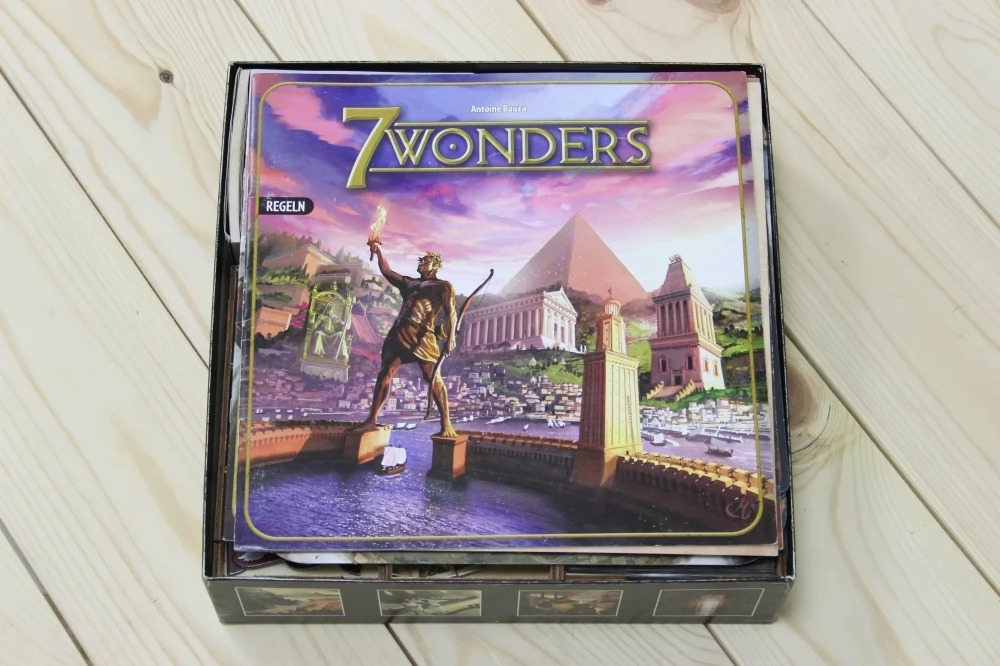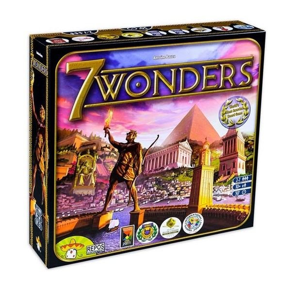 7 Wonders — это игра, в которой от трех до семи игроков соревнуются, чтобы построить и завершить одно из семи чудес древнего мира. Это карточная игра. Карты представляют некоторые ресурсы, необходимые для строительства зданий.