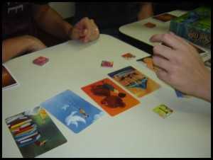Внимательно смотрим на карты, пытаемся раньше всех схватить берёзовое полено, а победитель получает в подарок сосновую шишку.