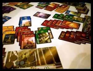 Как и в Race for the Galaxy, из-за одновременного выбора действий, можно играть хоть втроем, хоть всемером, при этом время игры не сильно увеличивается. Способов победить также много, пока один игрок пытается нарастить боевую мощь, другой может перепрыгнуть всех в области науки, а третий сделать ставку на развитие торговли или ремесел. Сюжет же игры в том, что нам надо отстроить собственный город со своим Чудом Света. Дополнительные приятные моменты механики игры — не одинаковые (но сбалансированные) начальные данные городов, и передача карт по кругу — выбирая что строить нужно понимать, что остальные карты перейдут соперникам. При игре большим составом ограничивается взимодействие с другими игроками, напрямую вы чувствуете действия только соседей. Впрочем, если для кого-то это проблема, дополнения ее частично лечат.