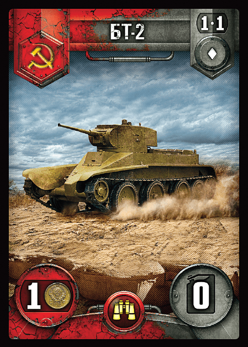 Карты экипажа, модулей и улучшений: Представляют необычных солдат или дополнительное оборудование, которое отличает отдельный танк от заводского стандарта. Они используются для изменения характеристик танка или придания ему дополнительных способностей. В стартовом наборе вы найдете 31 карту, с помощью которых вы сможете персонализировать свои танки.