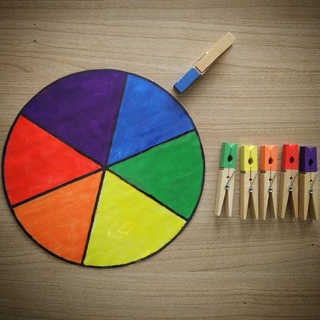 Выньте свои шайбы тоже и нарисуйте их, четыре из одного цвета и четыре из другого цвета. Другой вариант – пометить их разными дизайнами в постоянном маркере. Пусть дети придумают что-нибудь творческое.
