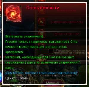 Во-первых, воины, вам понадобится ценный, в данном случае, материал «Огонь Вечности», в количестве до 80 штук на один красный предмет.