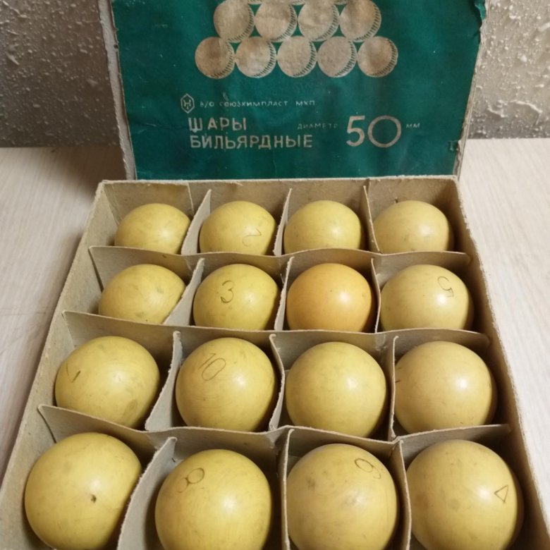 Маленький бильярдные шары диаметром 52 мм, британского производства.