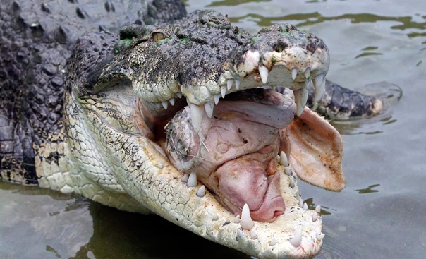 В дикой природе крокодилы зажимают свою добычу своими массивными челюстями, раздавливают ее, а затем проглатывают целиком. У них нет возможности жевать или отламывать маленькие кусочки пищи, как у других животных.