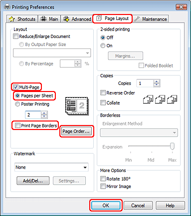 В области «Основные» задайте количество копий для печати, выберите, упорядочивать страницы или печатать их в обратном порядке; и укажите, какие страницы нужно распечатать.