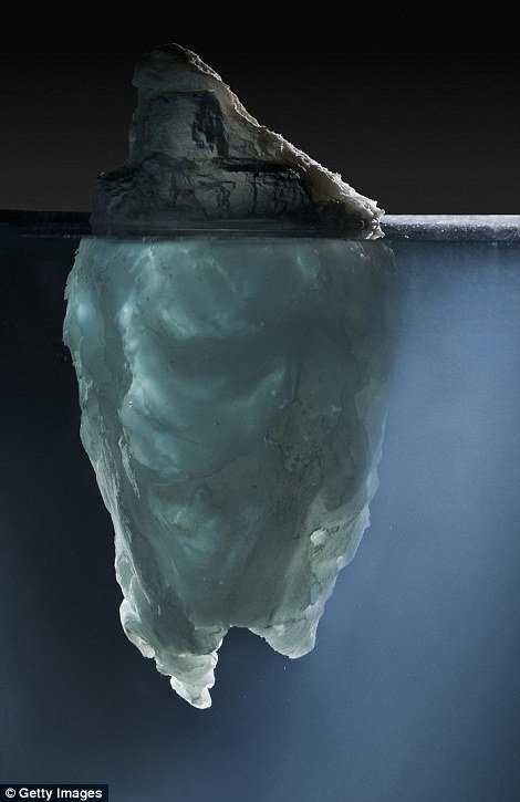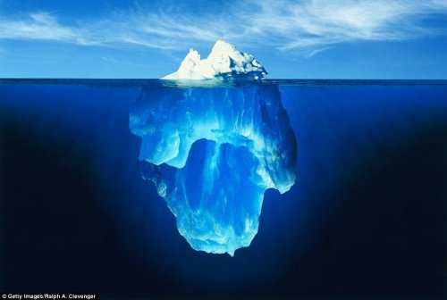 Рисунок: сравнение подводной и надводной части айсберга.