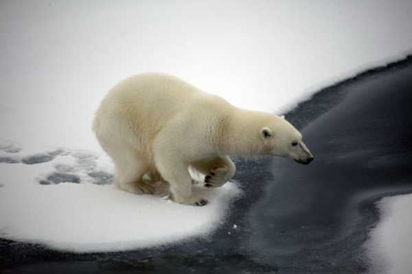 15. Белый медведь во льдах в районе Шпицбергена. Большая часть этого архипелага состоит из ледников.