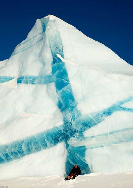 13. Огромный айсберг с бело-голубыми полосками.