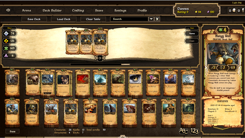 Компьютерная карточная коллекционная игра с 5 главными персонажами, от которых будет зависеть стиль геймплея той или иной колоды: Арканист, Инквизитор, Грабитель, Берсерк и Шпион.