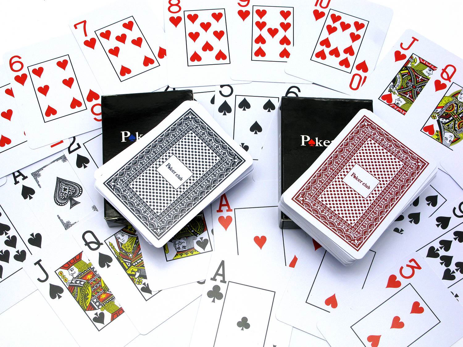 В каждой колоде 52 одномастные карты и 2 джокера