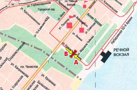 По Нулевой продольной ходит автобус № 98. После «Детского центра» поворачивает на Рабоче-Крестьянскую, а потом выходит на улицу Калинина и следом на набережную до «Торгового центра». Потом транспорт сворачивает на Калинина и добирается до конечной «Речпорт».