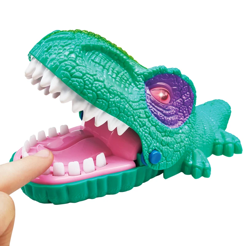 Нажимайте по очереди на зубы в открытой пасти зверя. При нажатии на один из зубов пасть закрывается, а крокодил смеётся и сверкает глазами. Успейте отдернуть руку до того, как он Вас укусит! Игра будет интересна для всей семьи, ведь «больной» зуб каждый раз меняется.