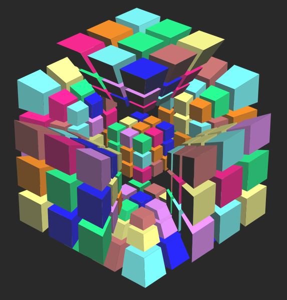 MagicCube7D решает проблему визуализации такого многомерного объекта, начав с уже знакомой нам 4D-проекции, а затем частично развернув последние три измерения, используя умный фрактальный дизайн. Не только одна головоломка, этот удивительный фрагмент кода поддерживает все 12 кубов из 3 9от 0006 4 до 5 7 . О, а потом он пошел и решил 3 7 . Молодец Андрей!