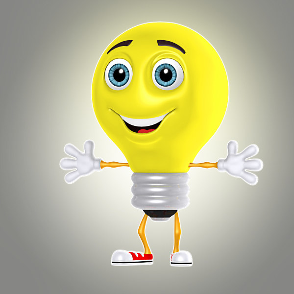 Лампочка — индикатор гениальных идейЭмоцииРобот лампочка3D графика