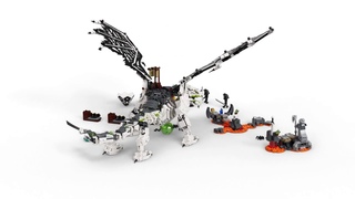 Голова дракона выглядит великолепно, с парой скелетных рогов, прикрепленных к зажимам. Центр брови использует последний стикер на изогнутом склоне 2 × 2.К нижней челюсти прикреплены руки робота, что обеспечивает хороший диапазон движений. Он также имеет красный коготь в виде языка, который торчит между зубами дракона. По всем правилам эта деталь должна сделать это немного глупо, но каким-то образом это работает. Думаю, мы видели достаточно рисунков, основанных на драконах, где язык обнажен, чтобы заставить этого человека просто проголодаться.