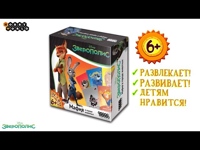 Знаменитая настольная игра «Мафия» с набором от торговой марки Hobby World обретает новое дыхание, поскольку теперь в нее могут играть и дети от 6 лет. Вместо привычных карточек игру сопровождают карты с персонажами мультфильма Zootopia, или «Зверополис». Сутью игры остается все та же стратегия поиска среди участников коварной мафии, регулярно убивающей мирное население.
