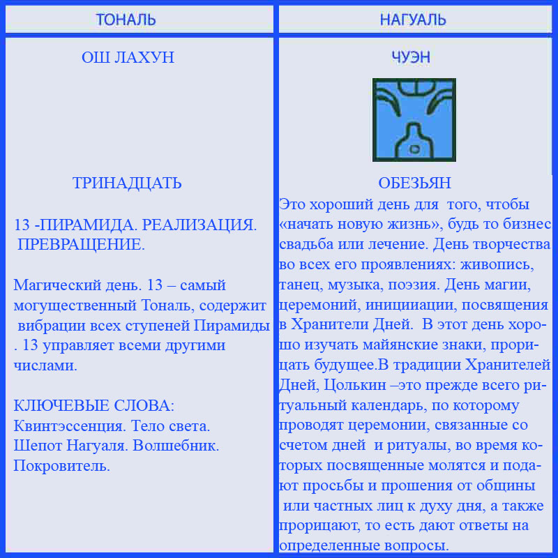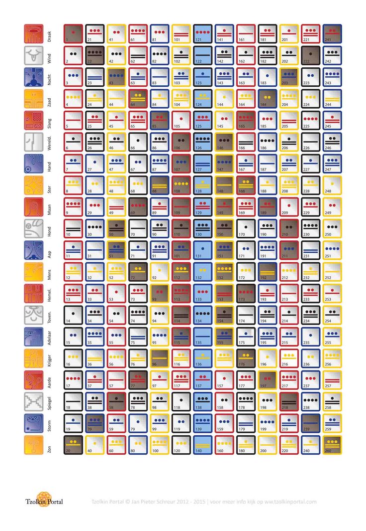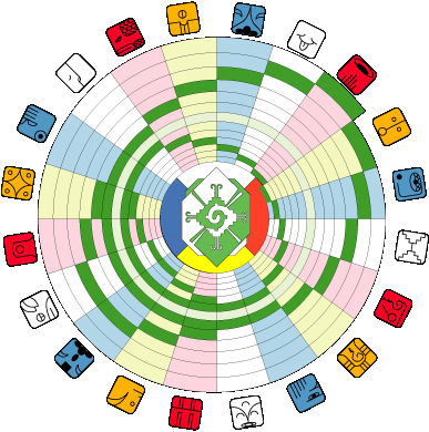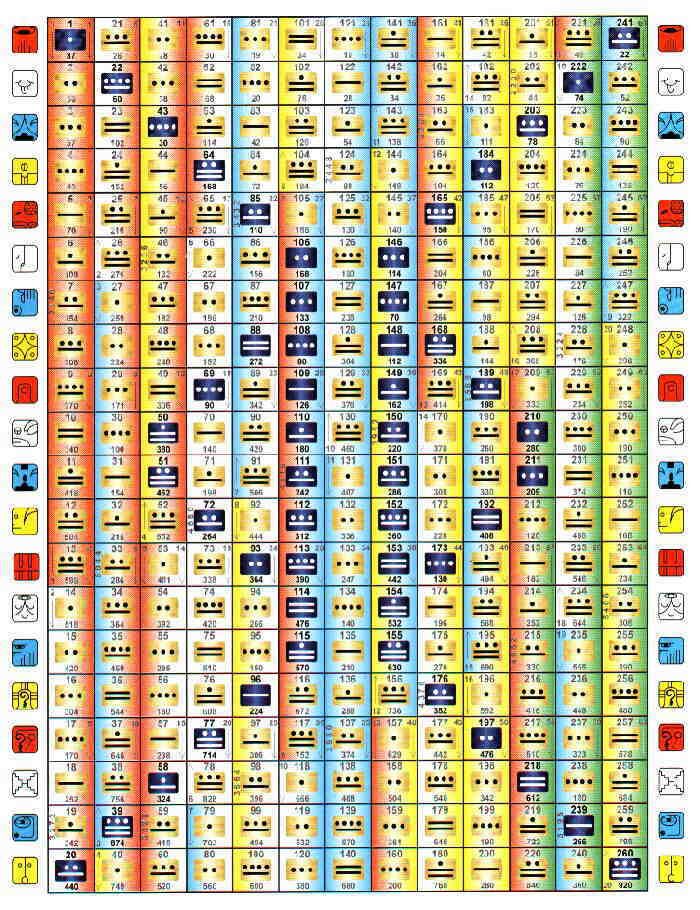 Таким образом, если год начался с 1 Имикса, затем на следующий день последовали 2 Ик, затем 3 Аакбала, затем 4 Кана и так далее.