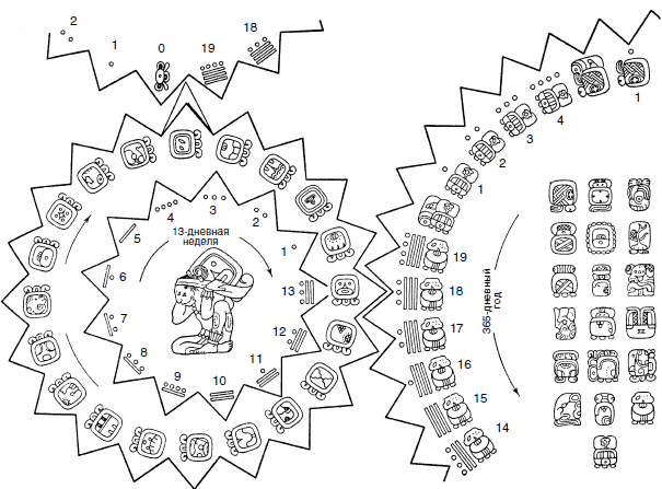 Чтобы определить день, число от 1 до 13 было объединено с названием дня. Затем число увеличивалось на единицу и одновременно использовалось название следующего дня.